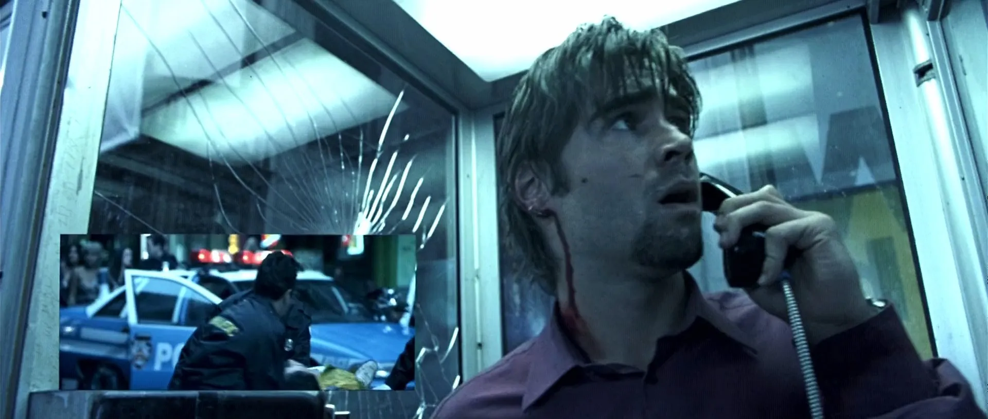 A slick New York publicist who picks up a ringing receiver in a phone booth is told that if he hangs up, he'll be killed... and the little red light from a laser rifle sight is proof that the caller isn't kidding.
