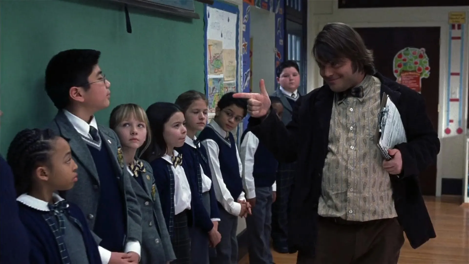 Fired from his band and hard up for cash, guitarist and vocalist Dewey Finn finagles his way into a job as a fifth-grade substitute teacher at a private school, where he secretly begins teaching his students the finer points of rock 'n' roll. The school's hard-nosed principal is rightly suspicious of Finn's activities. But Finn's roommate remains in the dark about what he's doing.